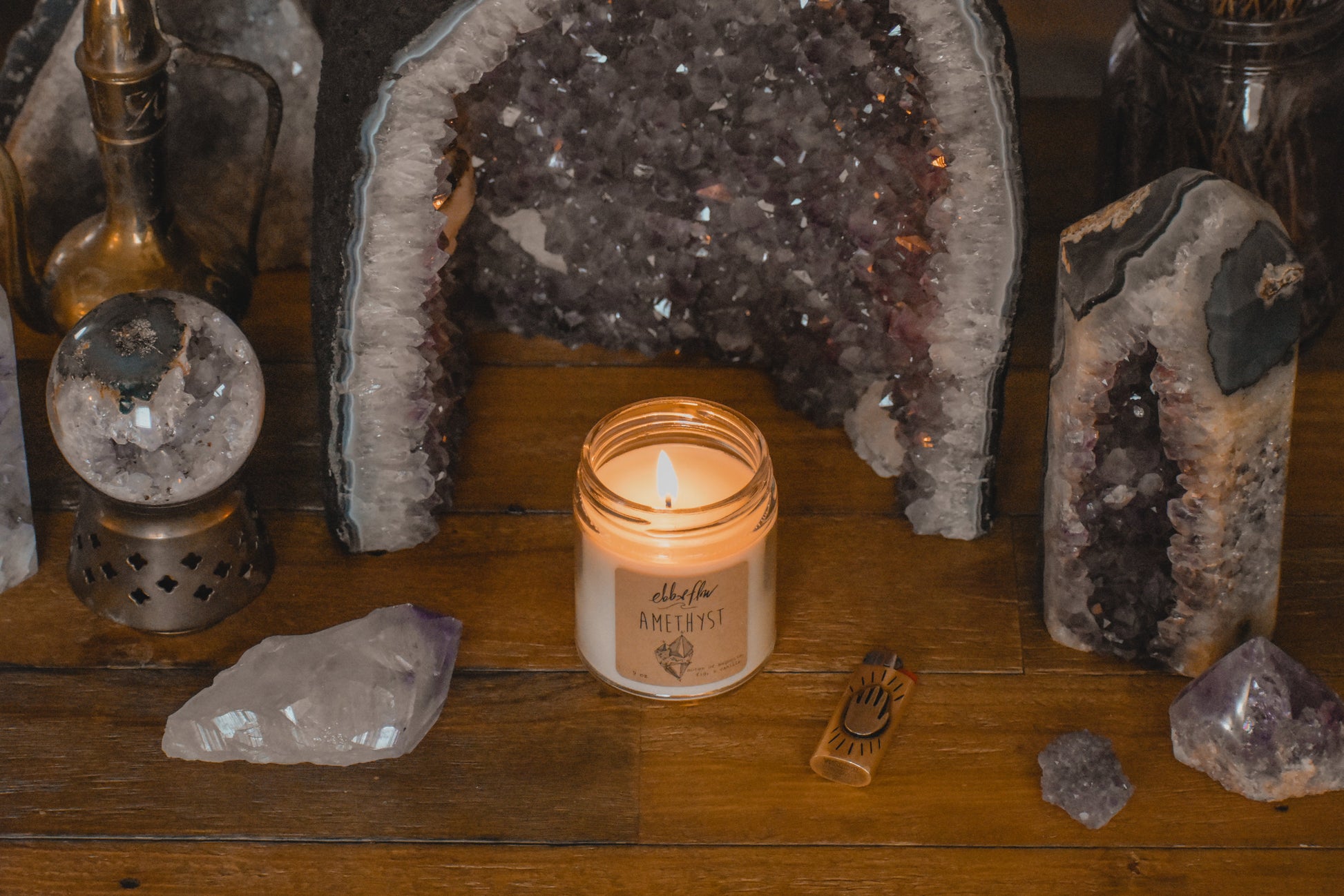 candle comes with an amethyst stone on top to hold your intentions and give you protection as they come true.