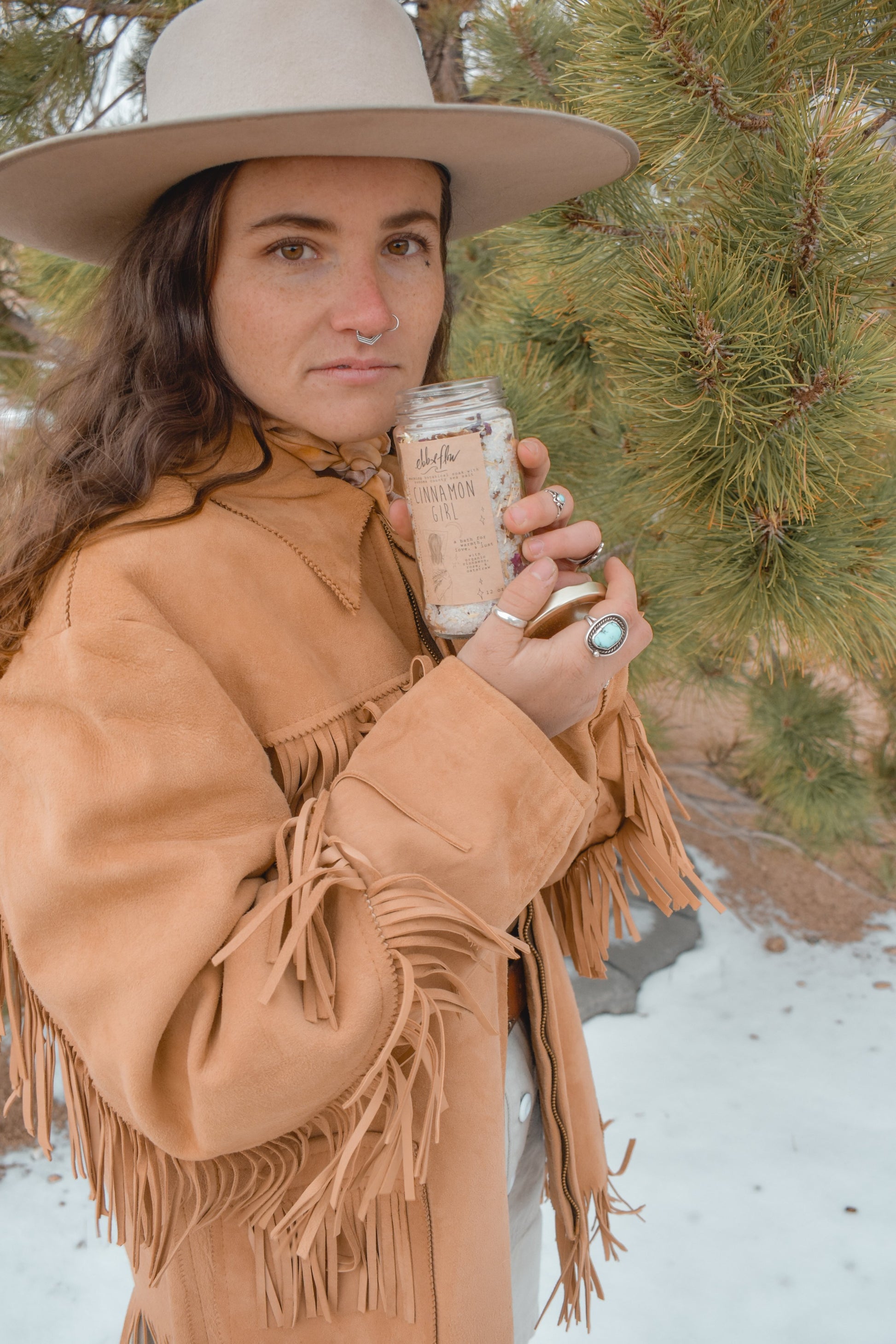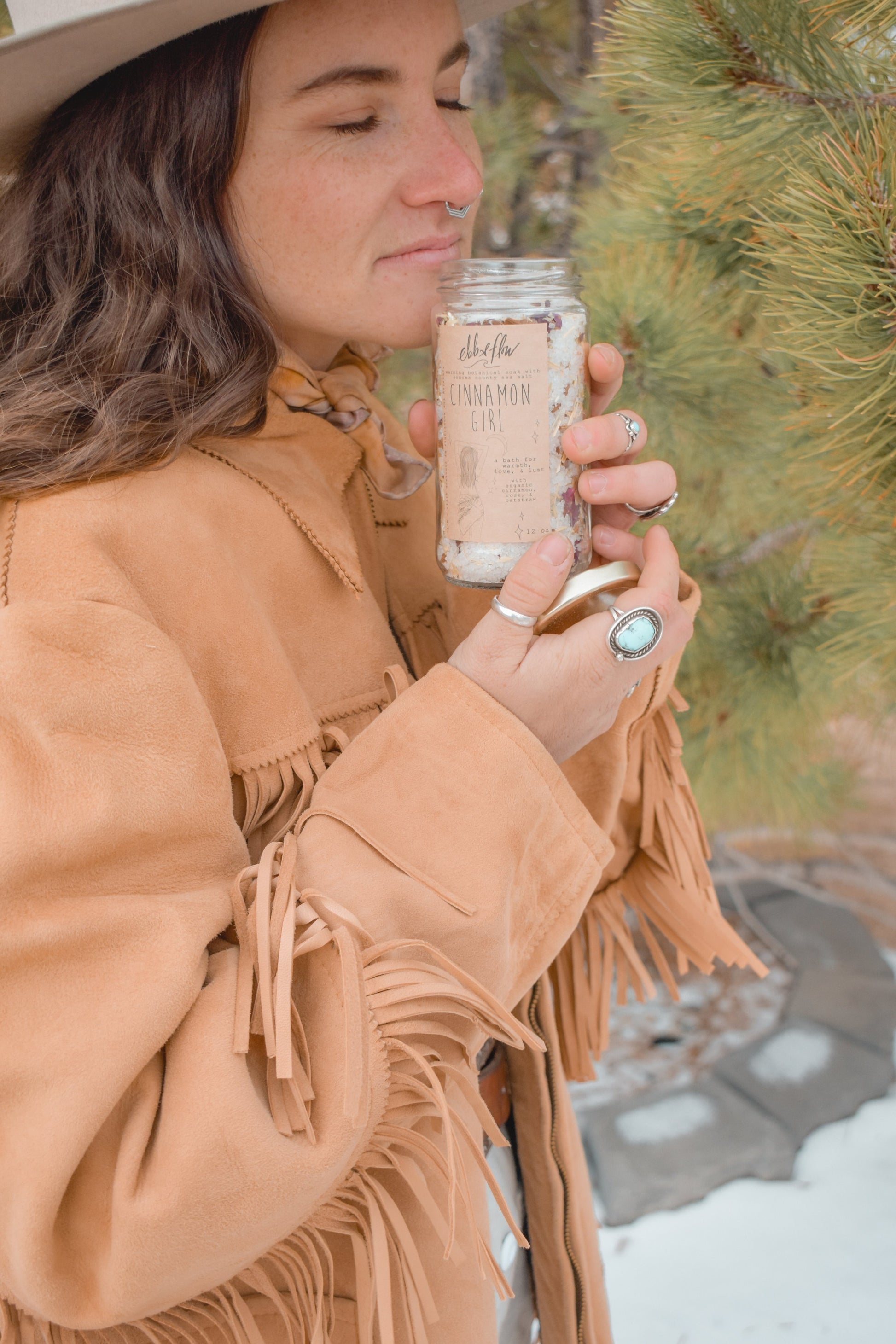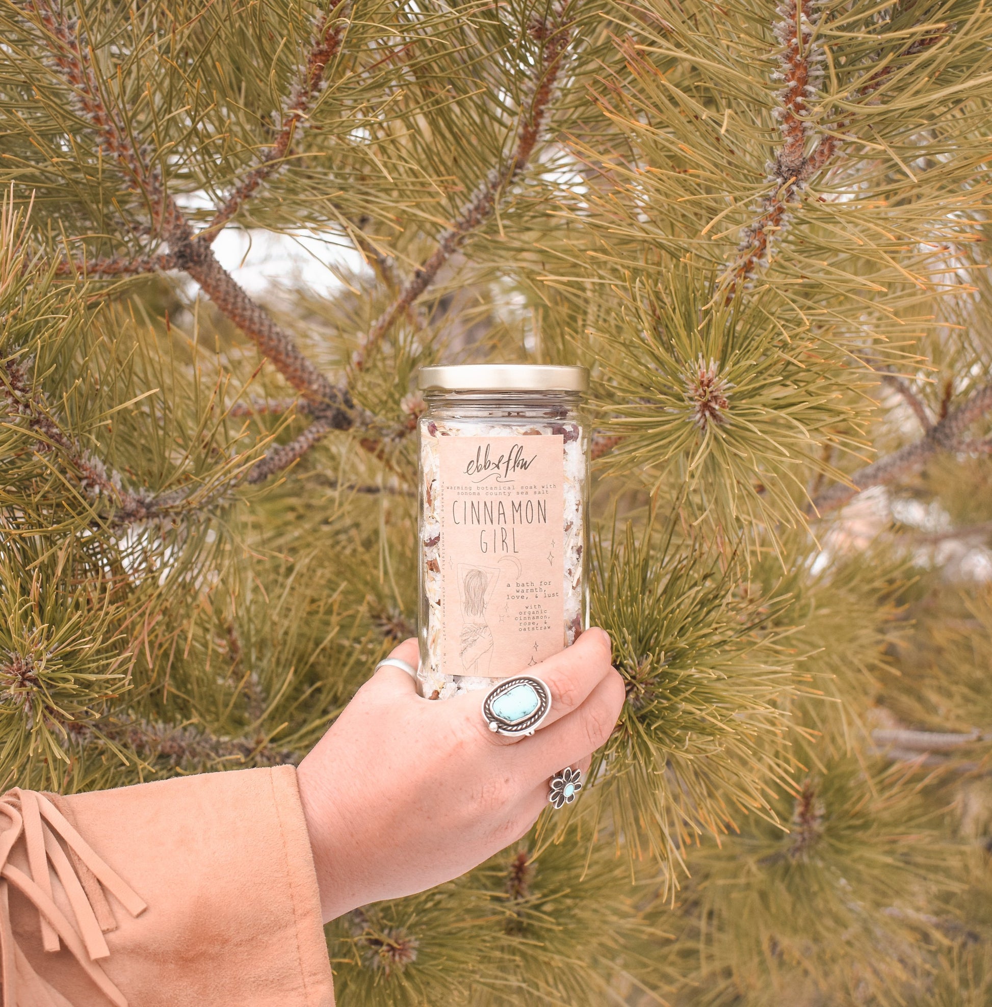 made with cleansing sea salt from sonoma county, skin calming oat straw, warming cinnamon chips / oil + patchouli oil, grounding lavender oil and organic homegrown red rose - this bath is a true relief + delight to all senses.