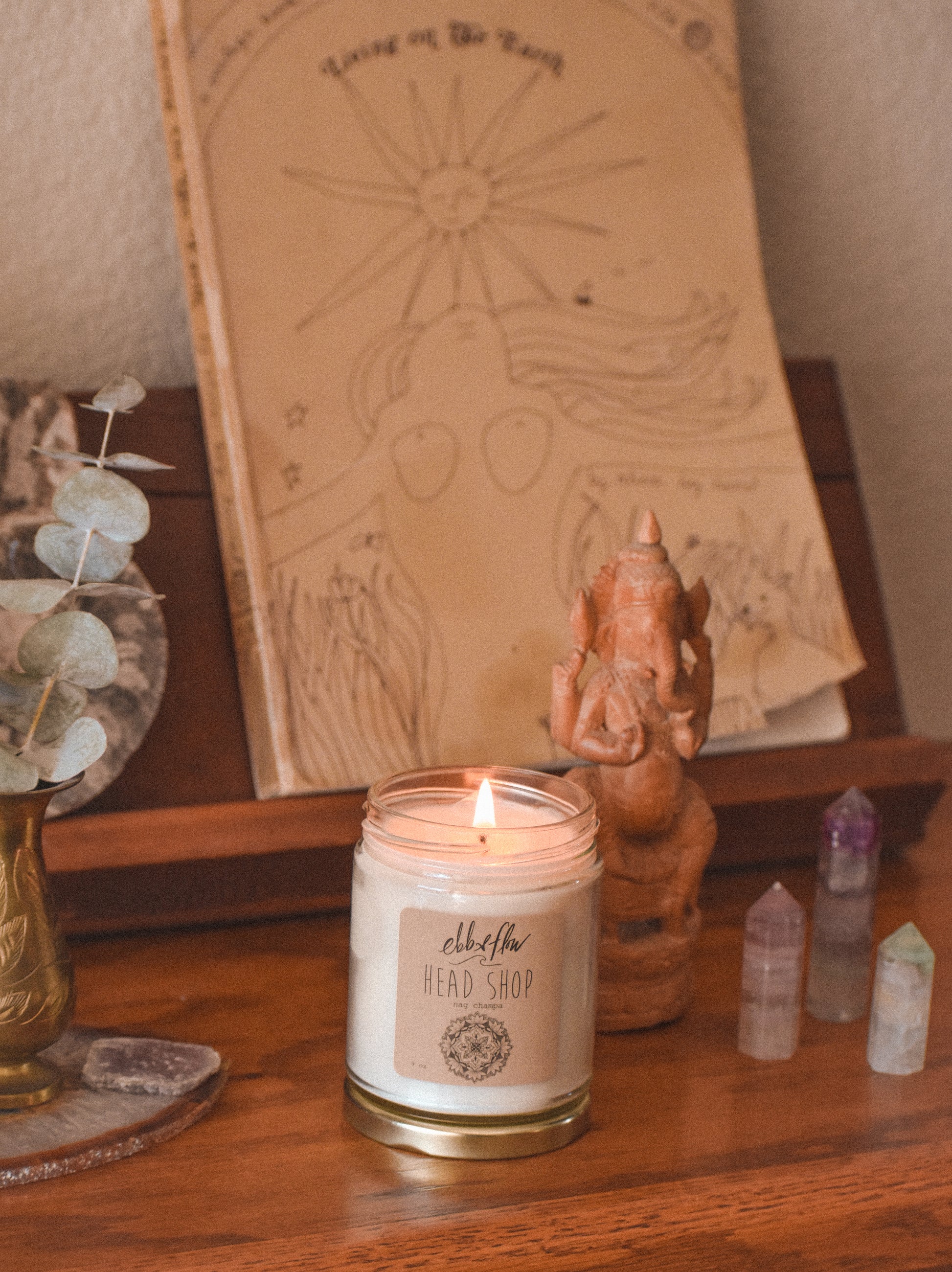 "head shop" is a classic nag champa scent (like the blue box of incense) ~ this candle was born as a way to enjoy the scent without burning messy incense (or do both like us)...