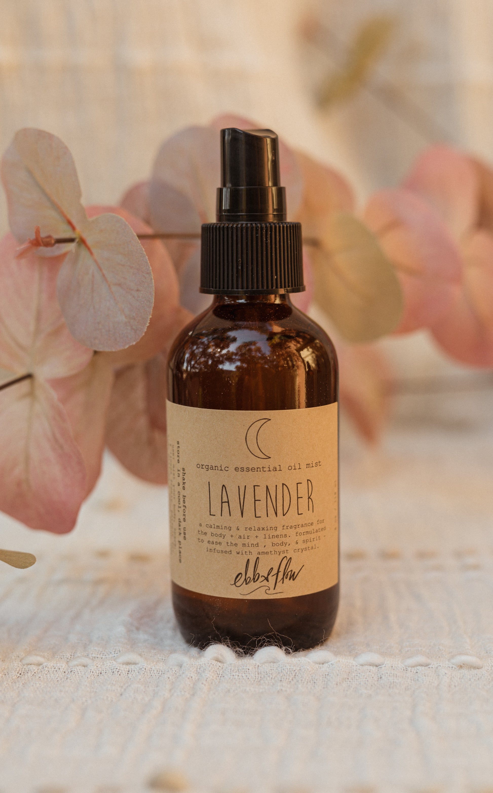 a single-note, organic lavender mulit-purpose mist ~ for the body, mind, sheets, air, yoga mat, great to spray in the kids rooms/linens to calm them down for bed/naptime ~