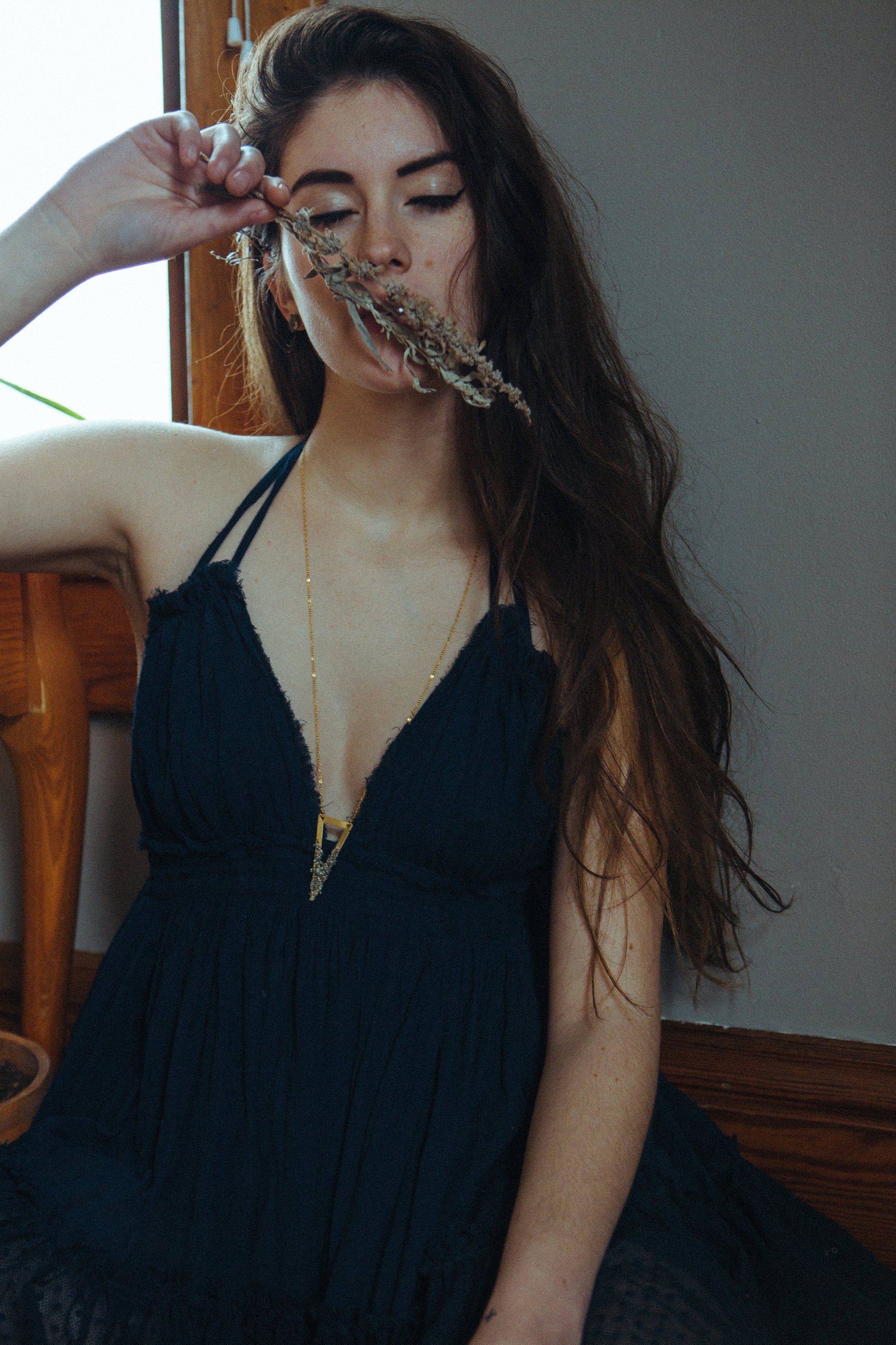 a pyrite dipped triangle necklace