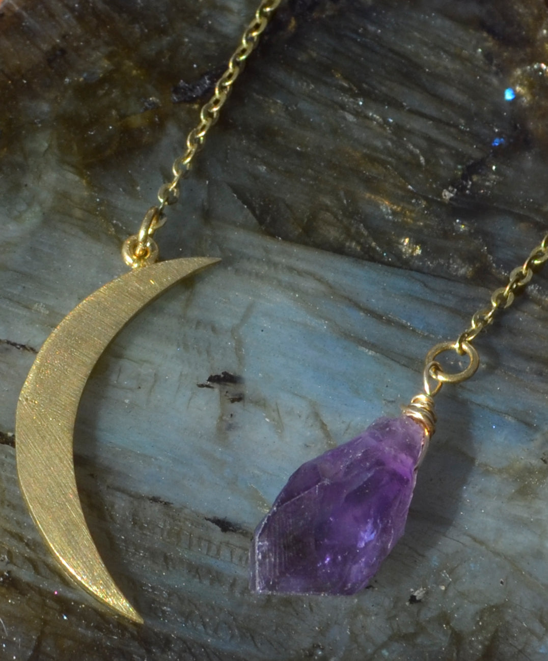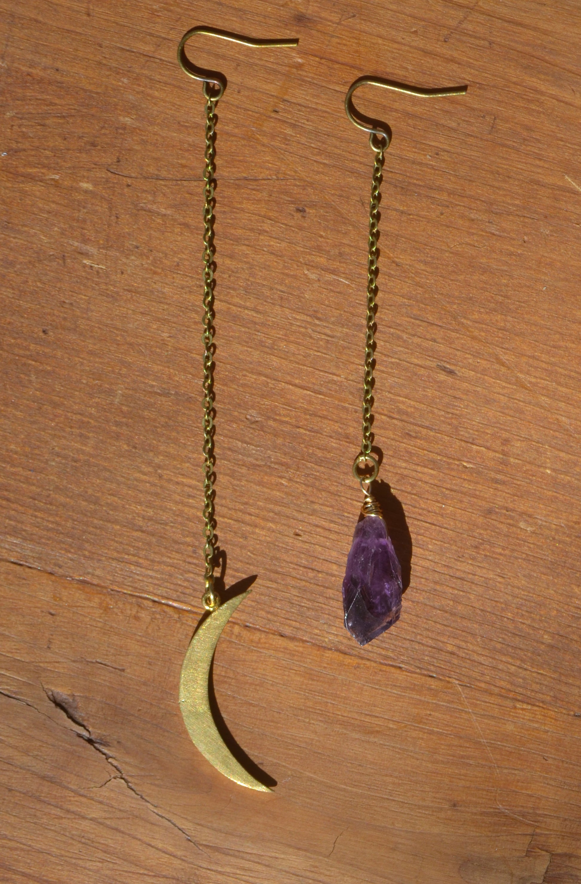 - the moon side measures 5" while the amethyst stone dangles at 3" from the other ear - balance of divine energies