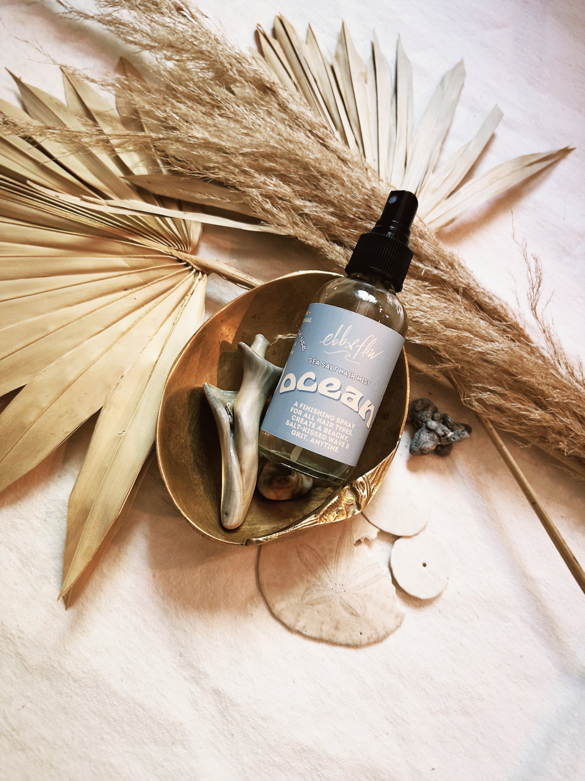 ocean is perfect to style your hair just out of the shower, or to freshen, volumize, & reshape your dry hair on no shower days. made with coconut oil & witch hazel to moisturize, texturize, nourish, and defrizz.