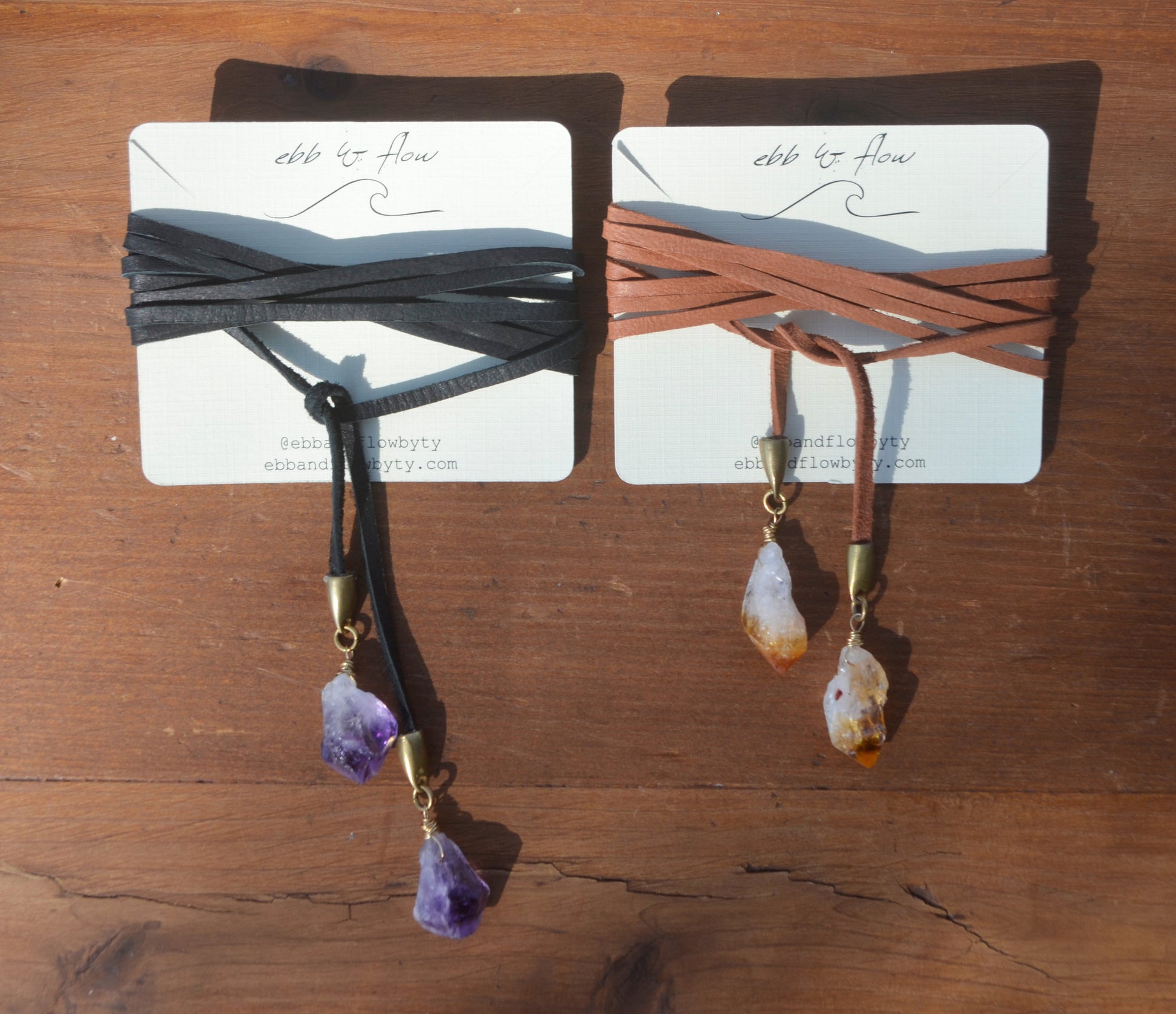 - available in two colorways, select whether you would like saddle brown with citrine OR black with amethyst