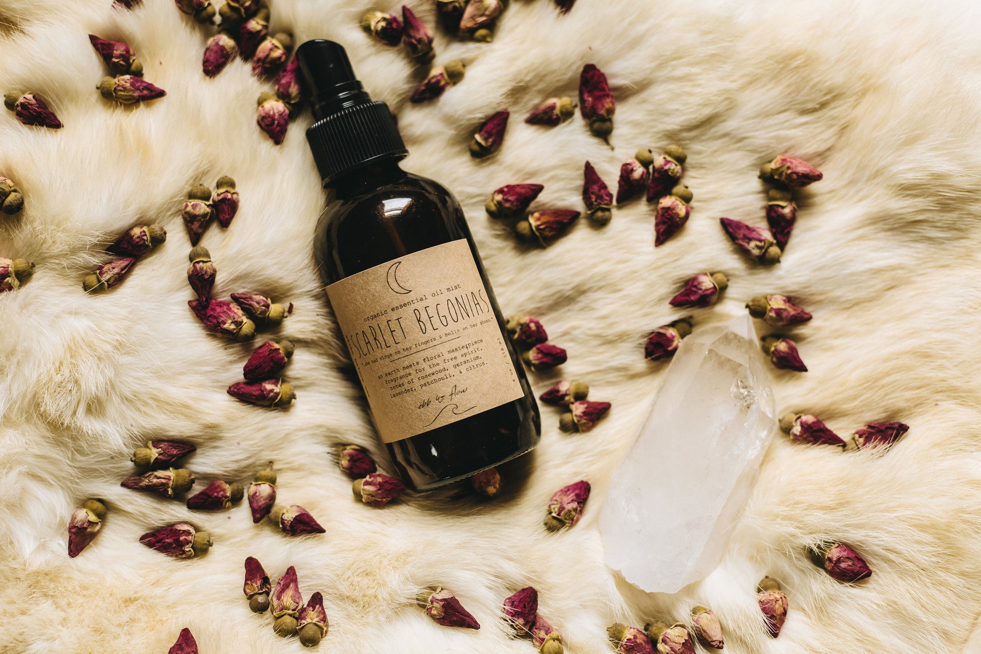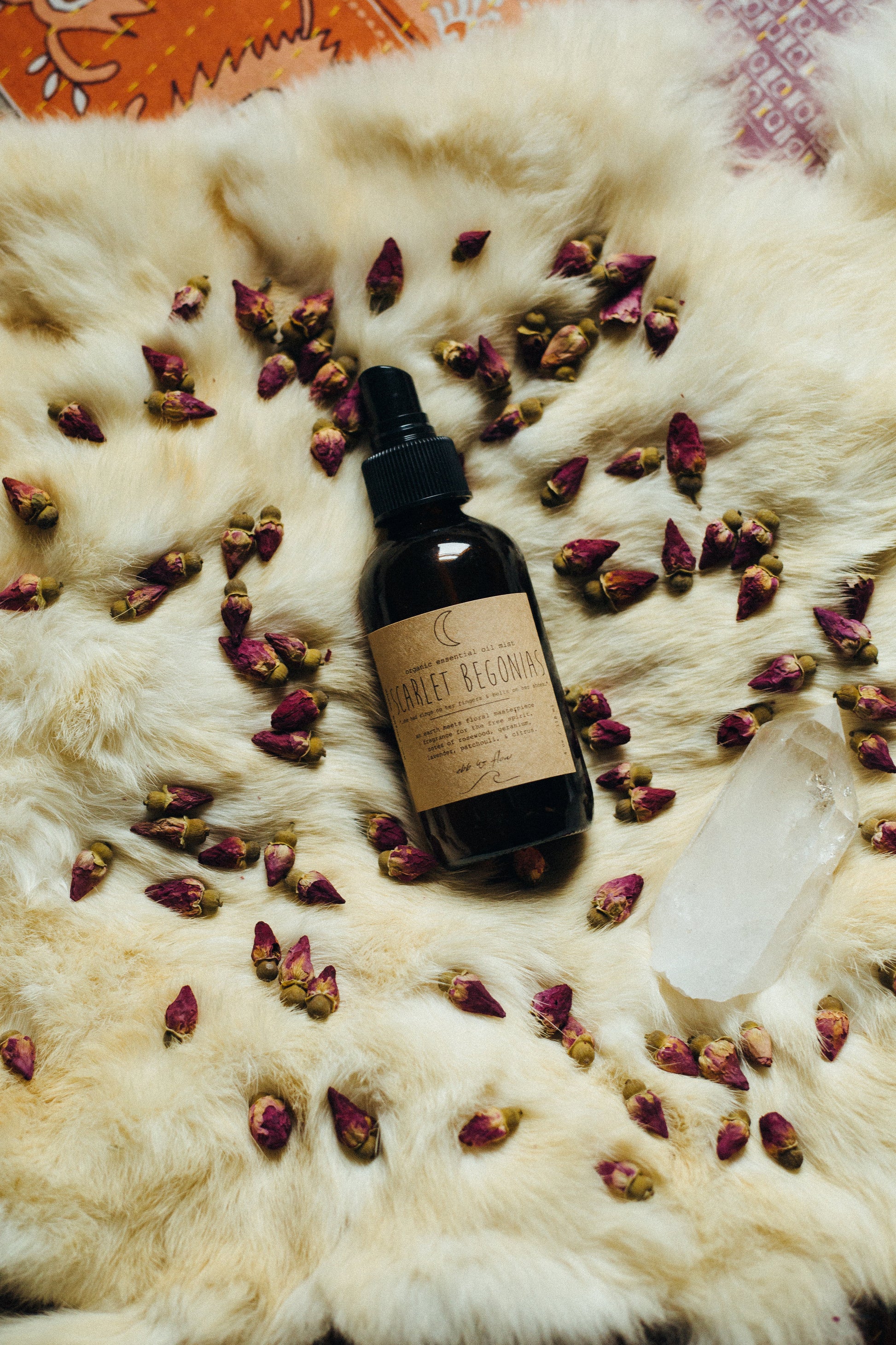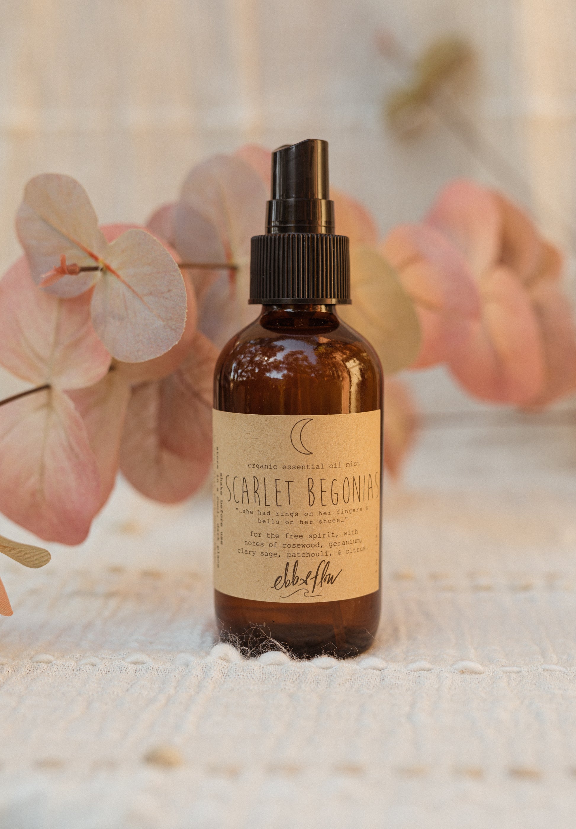 Scarlet Begonias ~ the perfect, beautiful marriage of floral & earthy scents. notes of patchouli & rose, touches of citrus, warm wood undertones with a floral first impression, this scent is complex, in all the right ways.