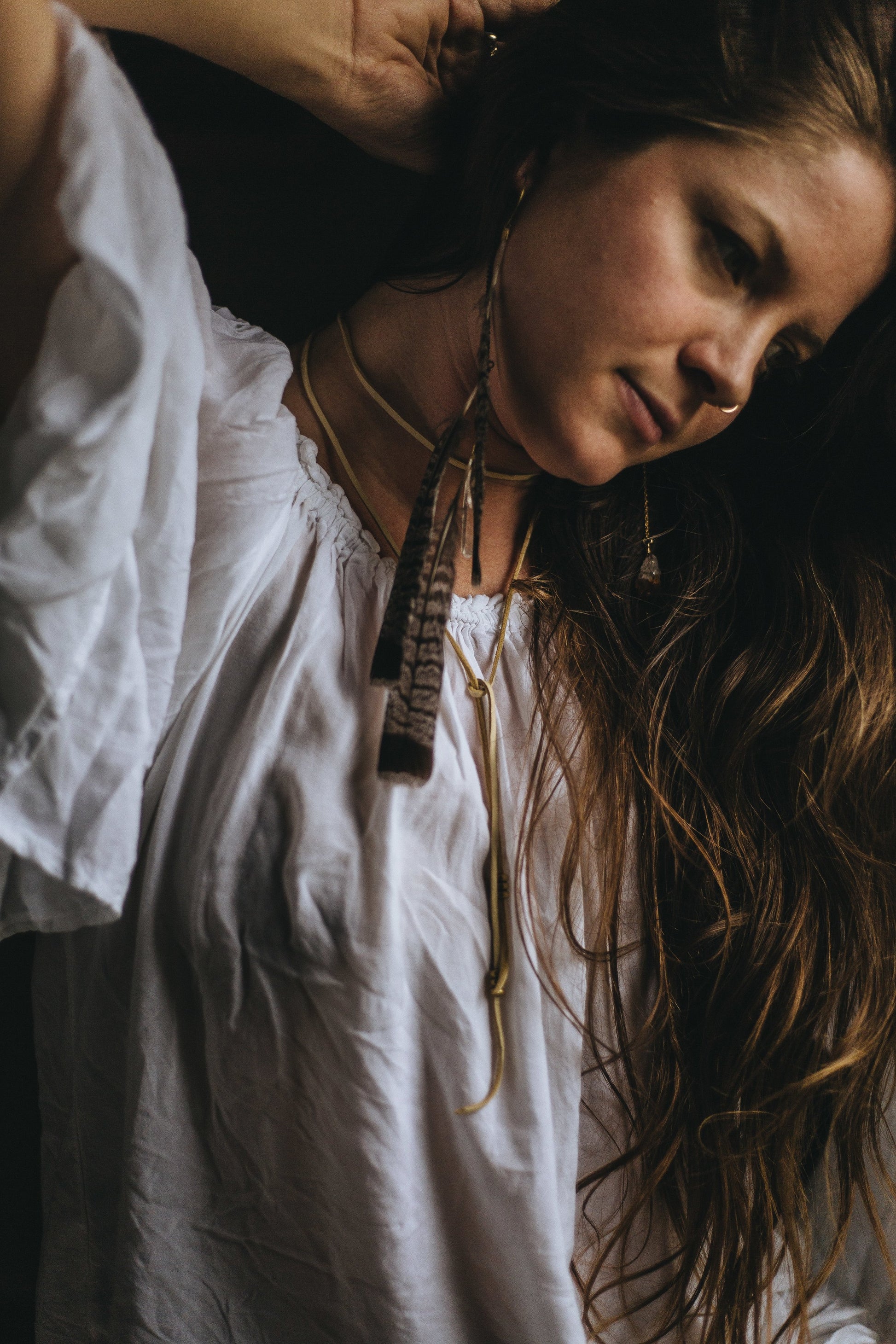 - adorned with 6 rubber lined brass beads, you can move them up & down the necklace for even more versatility
