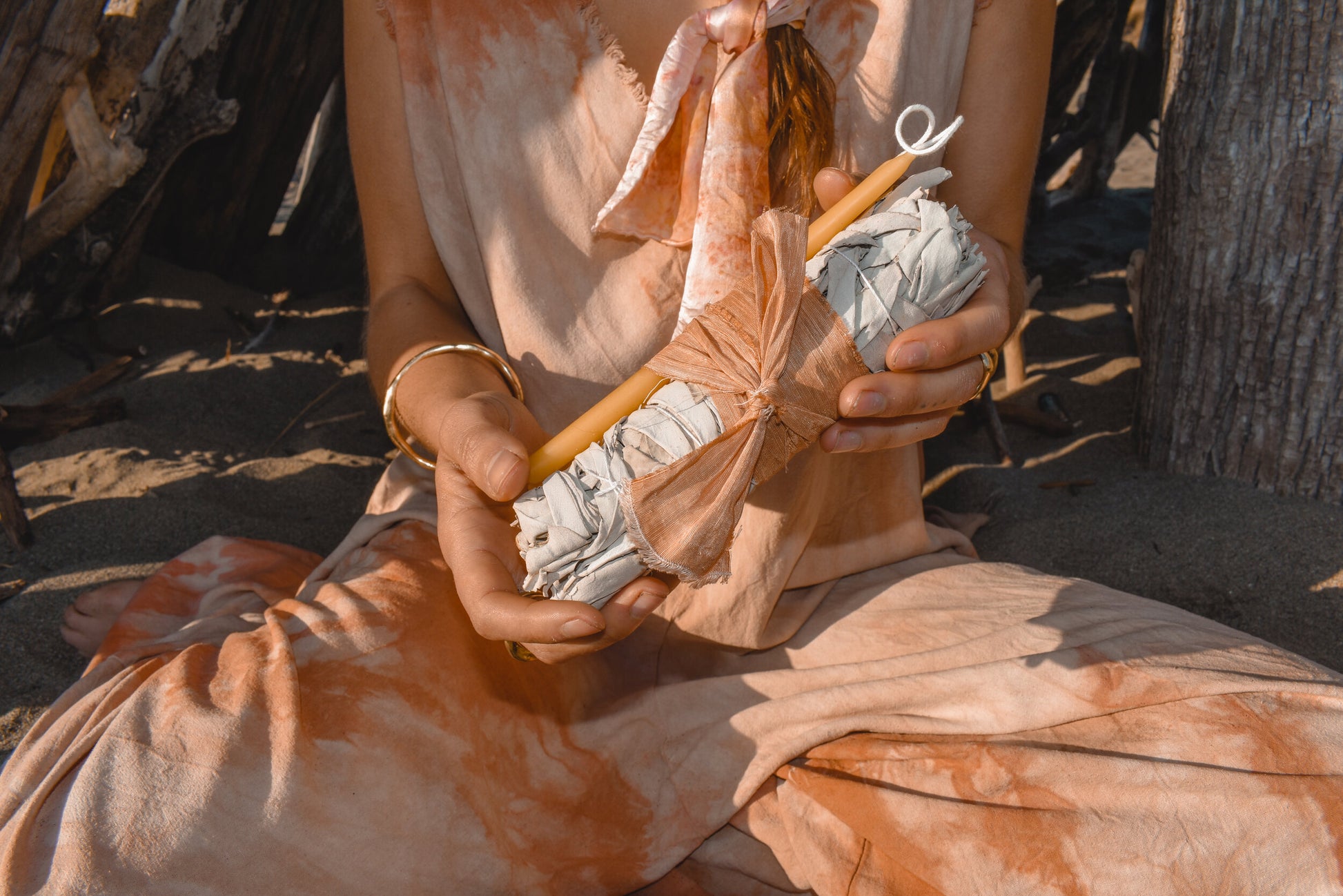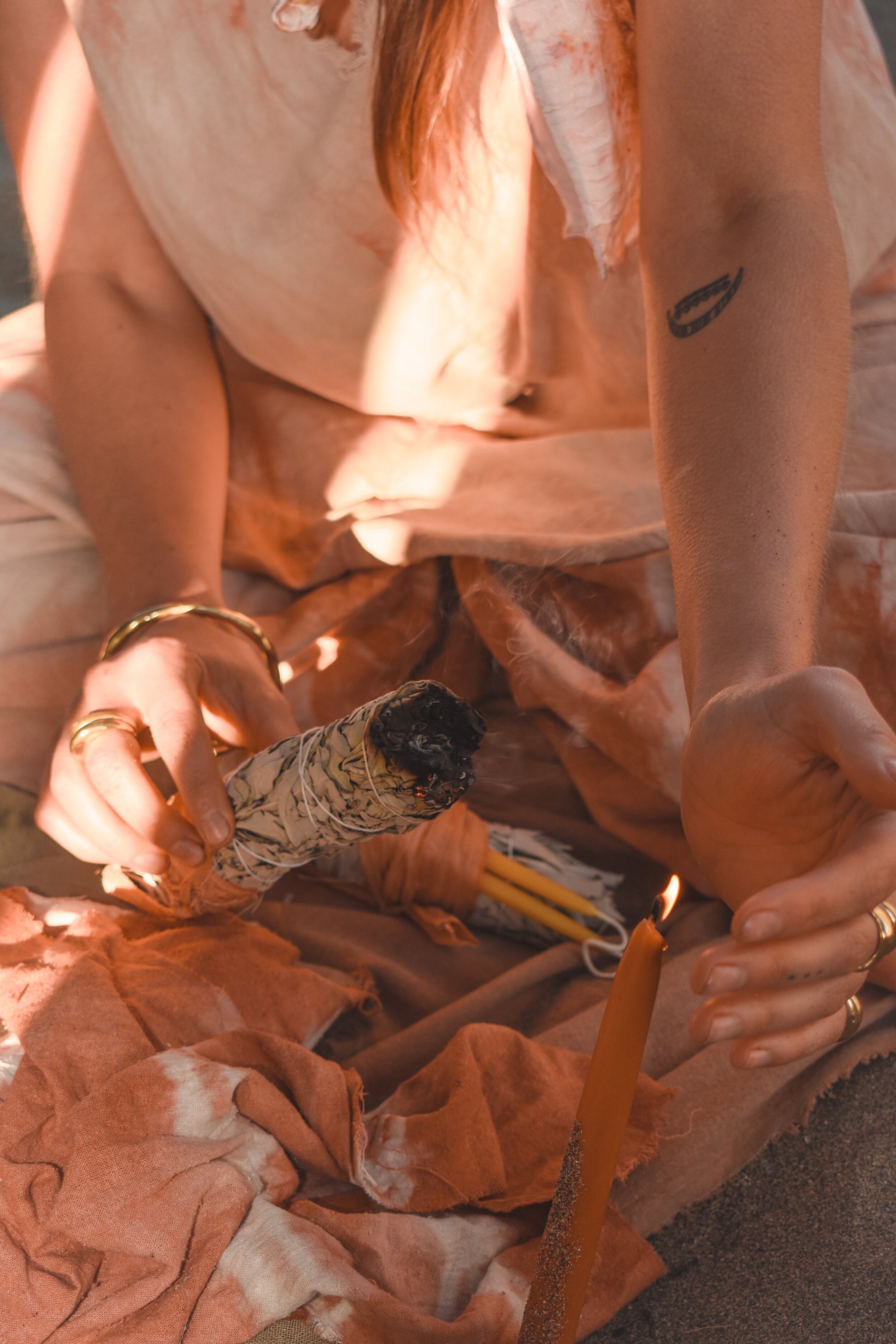 lighting my sage with beeswax candles is my favorite way to use the medicine. it creates a sacred flame for igniting the sage that is beautiful and practical : no more burning fingers with lighters or matches.